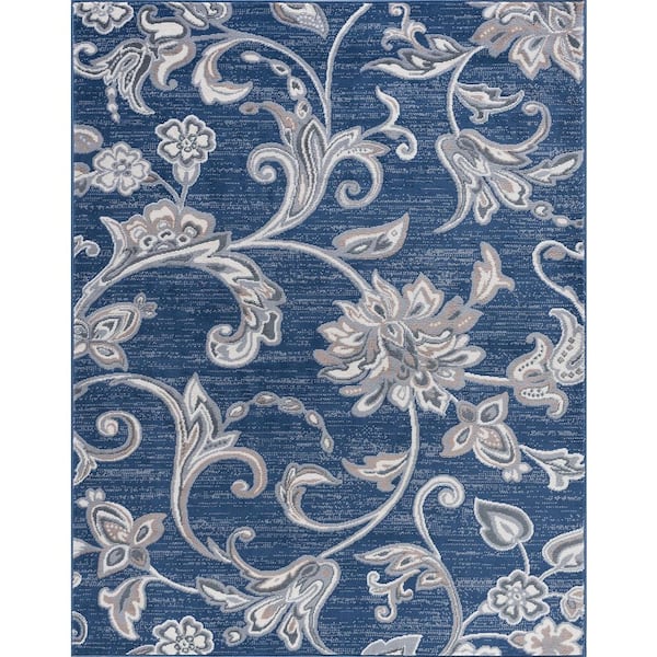 Madison Floral Navy 4 ft. x 6 ft. Indoor Area Rug