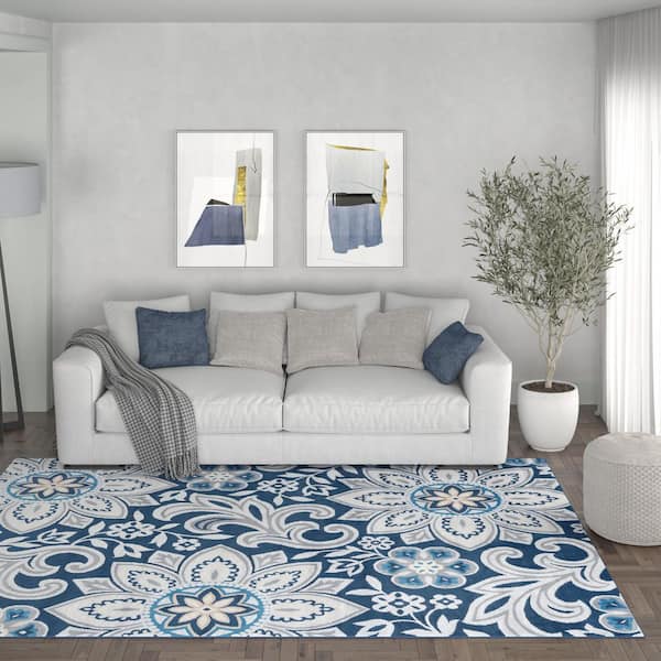Madison Floral Navy 5 ft. x 7 ft. Indoor Area Rug