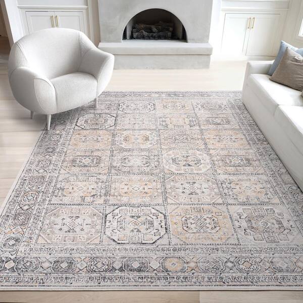 Magic Traditional Cream and Gray 5 ft. x 7 ft. Oriental Indoor Area Rug