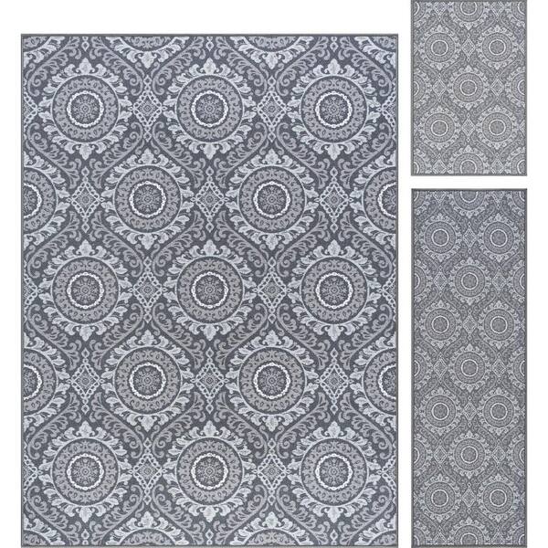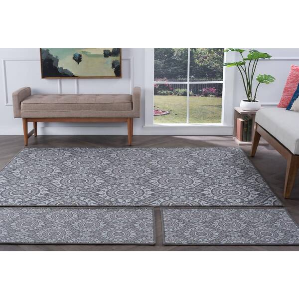 Majesty Geometric Charcoal 5 ft. x 7 ft. Indoor 3-Piece Rug Set