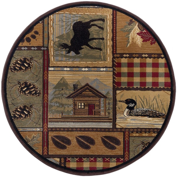 Nature Lodge Multi-Color 6 ft. Round Indoor Area Rug