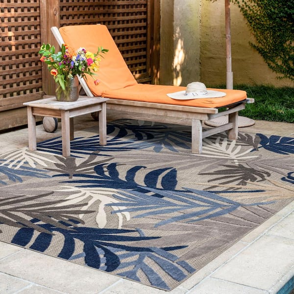 Oasis Floral Blue 8 ft. x 10 ft. Indoor/Outdoor Area Rug