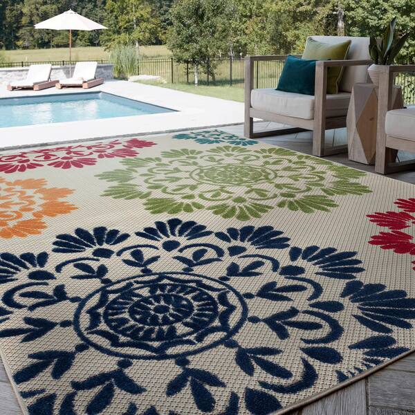 Oasis Floral Multi-Color 5 ft. x 7 ft. Indoor/Outdoor Area Rug