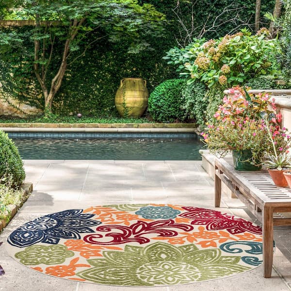 Oasis Floral Multi-Color 8 ft. Round Indoor/Outdoor Area Rug