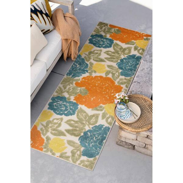 Oasis Gold 2 ft. x 8 ft. Floral Indoor/Outdoor Area Rug