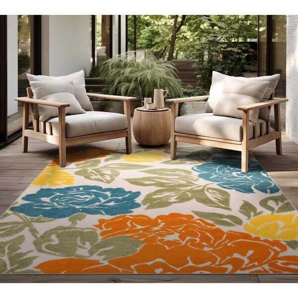 Oasis Gold 5 ft. x 7 ft. Floral Indoor/Outdoor Area Rug