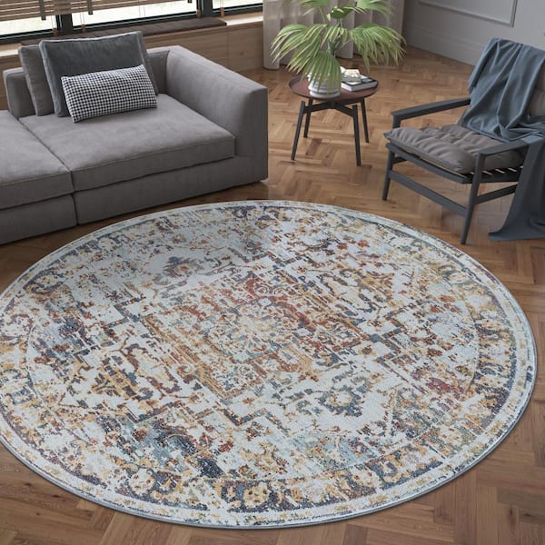 Reina Oriental Navy 8 ft. Round Indoor Area Rug