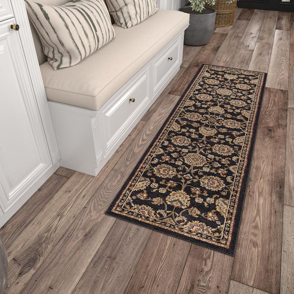 Sensation Border Black 2 ft. x 10 ft. Indoor Runner Rug