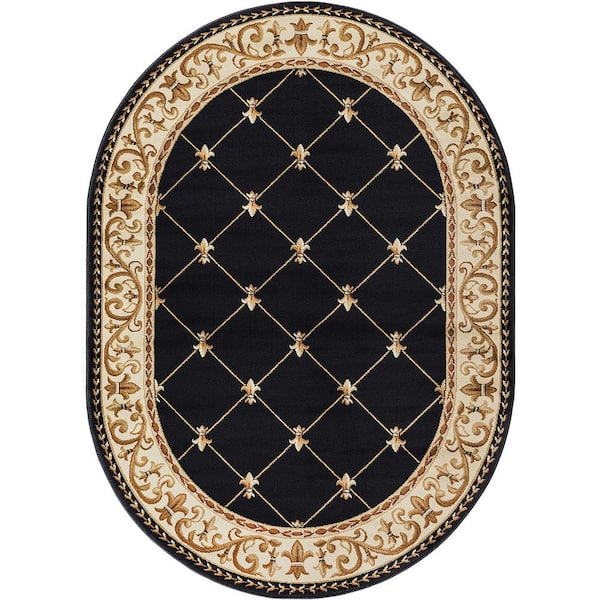 Sensation Border Black 5 ft. x 8ft. Oval Indoor Area Rug