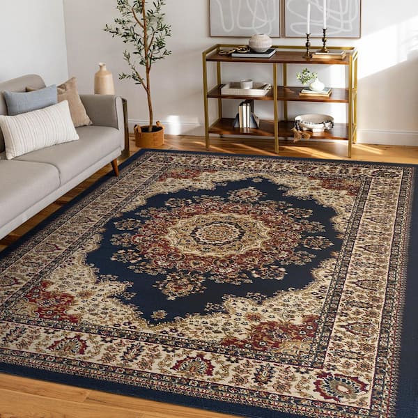 Sensation Border Navy 9 ft. x 12 ft. Indoor Area Rug