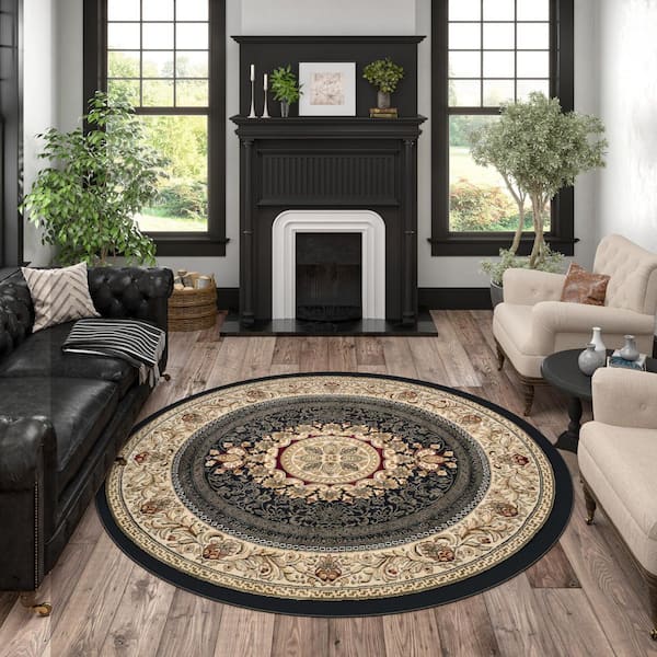 Sensation Oriental Black 6 ft. Round Indoor Area Rug