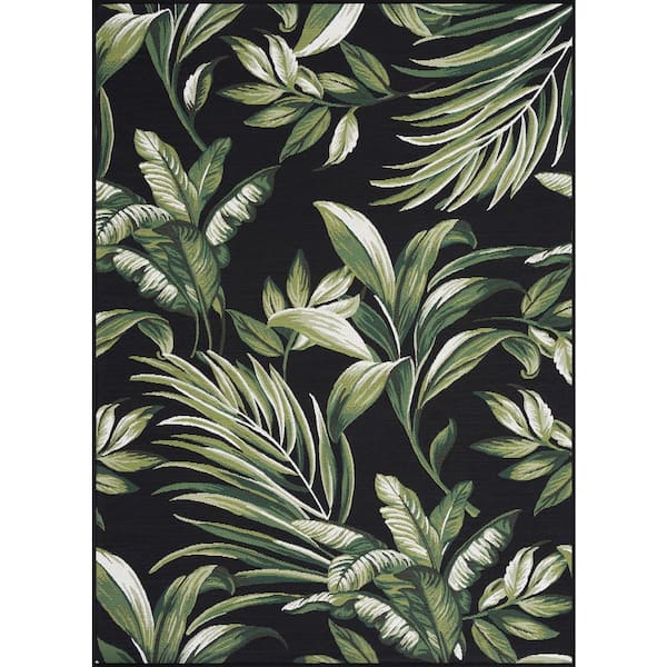 Stunning Black 5 ft. x 7 ft. Floral Indoor/Outdoor Area Rug