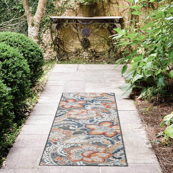 Tropic Floral Black 2 ft. x 8 ft. Indoor/Outdoor Area Rug