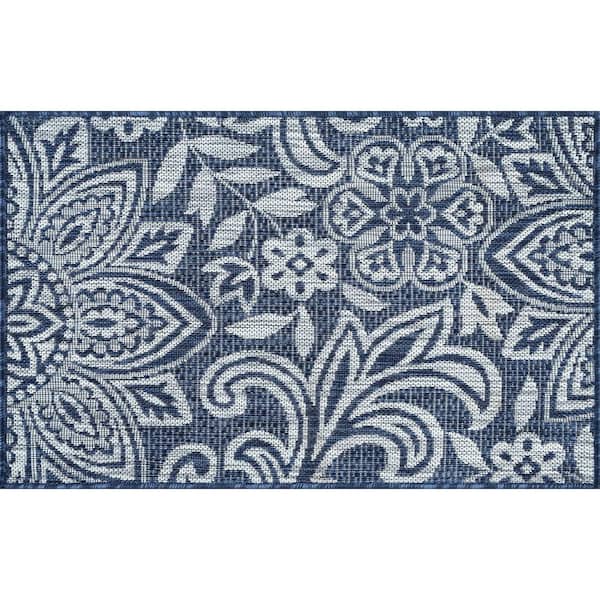 Veranda Floral Navy 2 ft. x 3 ft. Indoor/Outdoor Area Rug