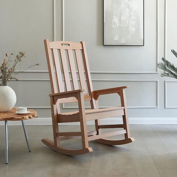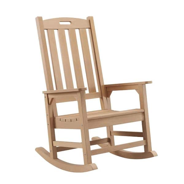 Teak Color Plastic Oversized Outdoor Rocking Chair