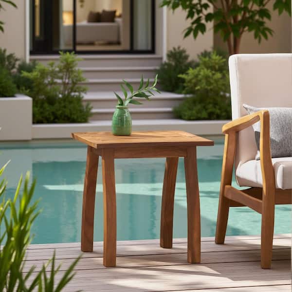 Teak Finish Rectangular Wood Outdoor Side Table, Outdoor End Table