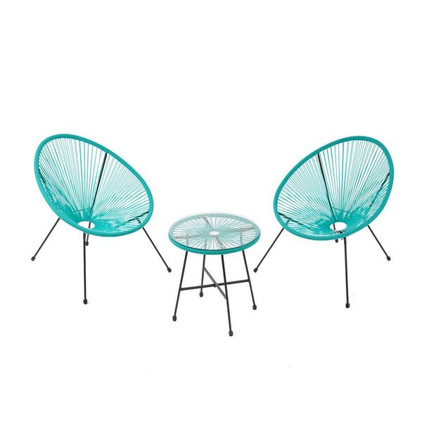 Teal 3-Piece PE Wicker Outdoor Patio Conversation Set 2 Chairs and 1 Coffee Table