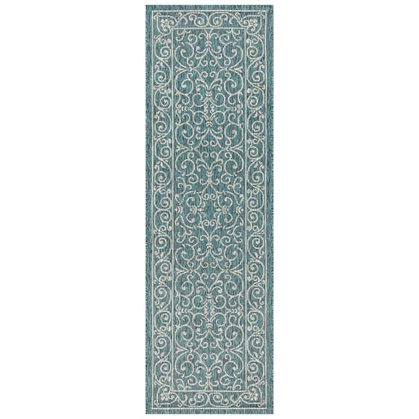 Teal Polypropylene 2 ft. x 8 ft. Floral Indoor Runner Rug