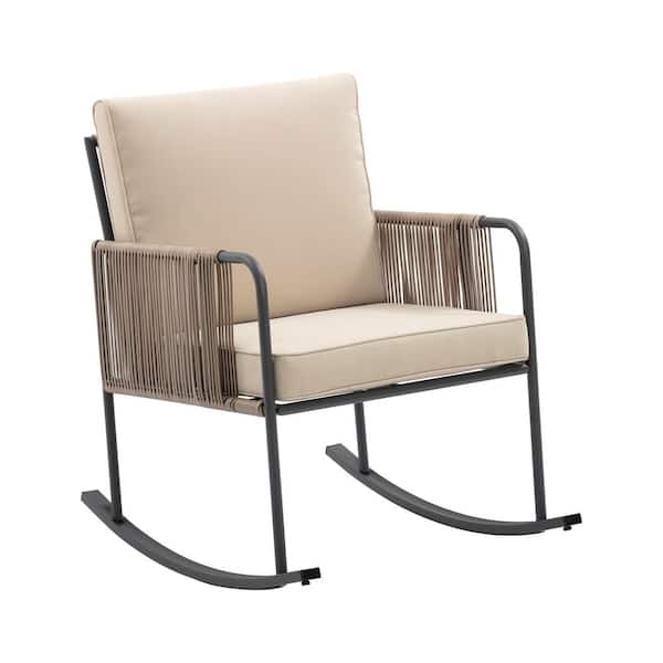 3-Piece Outdoor Rocking Chair Conversation Set with Cushions and Steel Frame in Greige