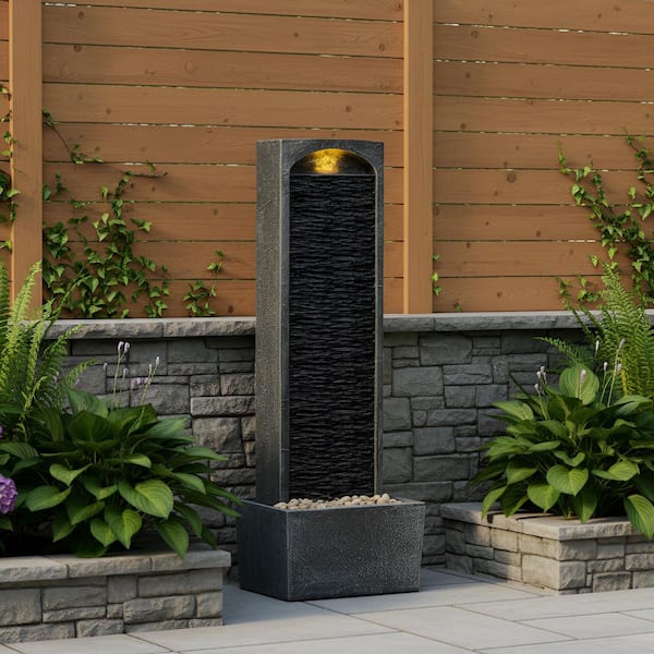 38.58 in. Gray Polyresin Modern Style Cascade Waterfall Fountain with LED Light