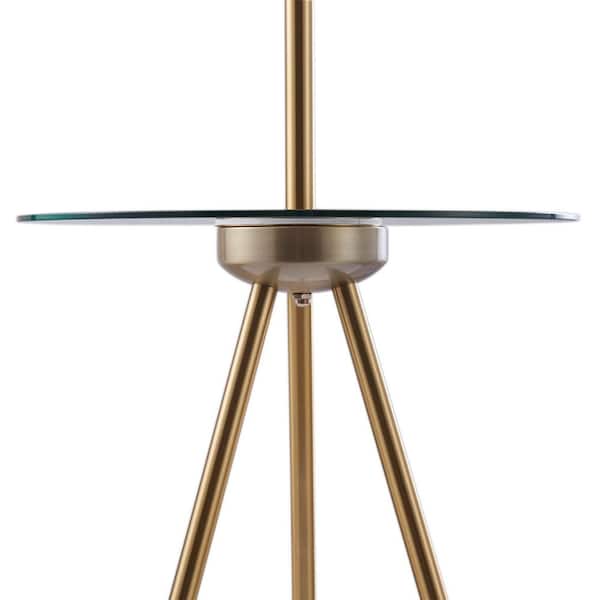 62.5 in. H Myra Tripod Mid-Century Modern Floor Lamp with Glass Table, Gold/Black