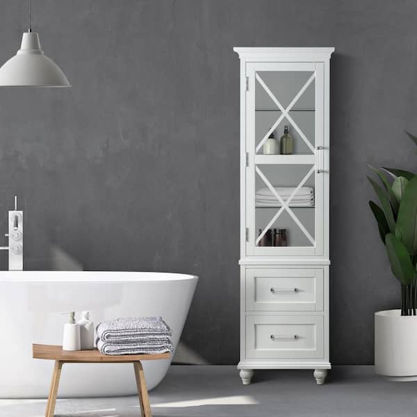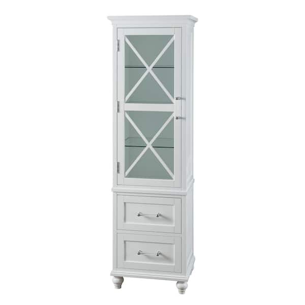 Blue Ridge 18 in. W x 14 in. D x 60 in. H Freestanding Linen Cabinet with 2 Drawers in White