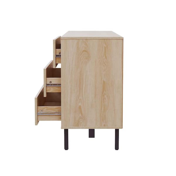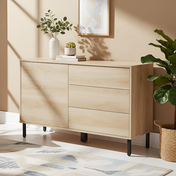 Cairo 47.5 in x 15.75 in. Wooden Sideboard Table Stand Cabinet with 3 Drawers, Light Oak
