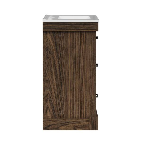 Donovan 24.02 in. Single Sink Freestanding Walnut Bath Vanity with White Ceramic Integrated Square Top