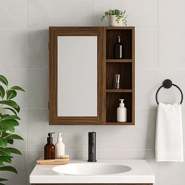 Ellery 6.69 in. W x 20.08 in. D x 24.02 in. H Walnut Rectangular Medicine Cabinet with Mirror