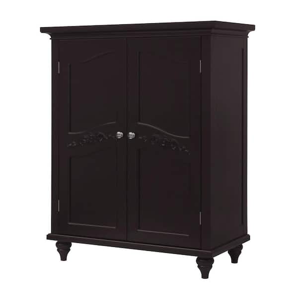 Versailles 27 in. W x 13.75 in. D x 34 in. H Freestanding 2 Door Floor Storage Brown Cabinet with 2 Adjustable Shelves