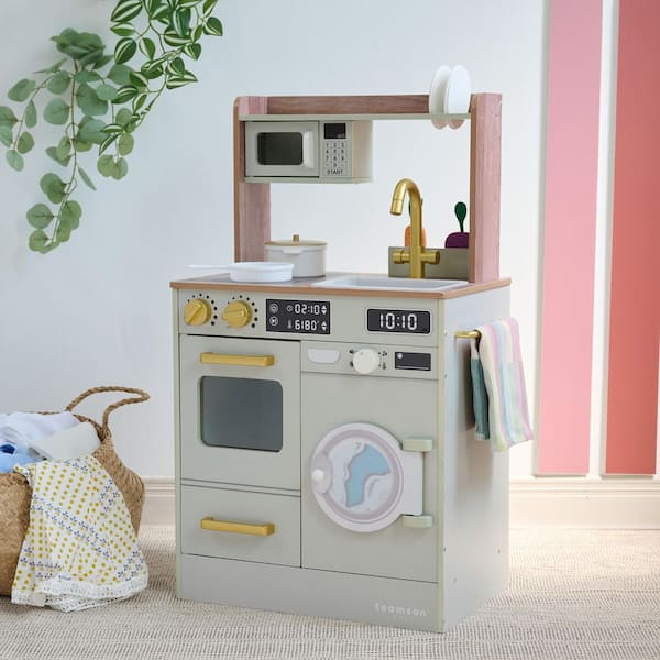 Little Chef Lake Tahoe Green Wooden Play Kitchen with Washing Machine, Sink and Mini Garden