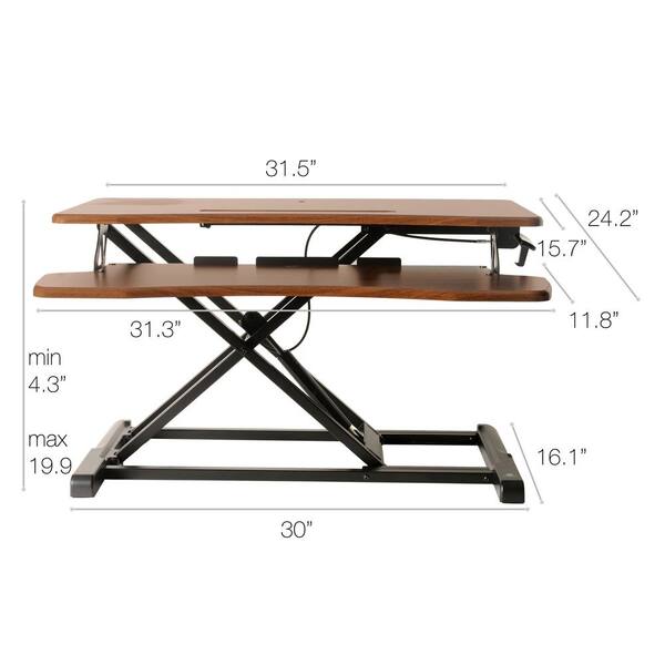 Rise-X Light Walnut 32 in. Height Adjustable Standing Desk Converter with Keyboard Tray - Sit to Stand Desk Riser