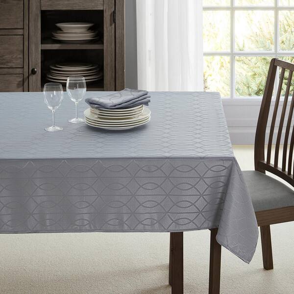 Branson Teflon Treated Jacquard Tablecloth, Gray, Tablecloth, (60 in. X 120 in.)