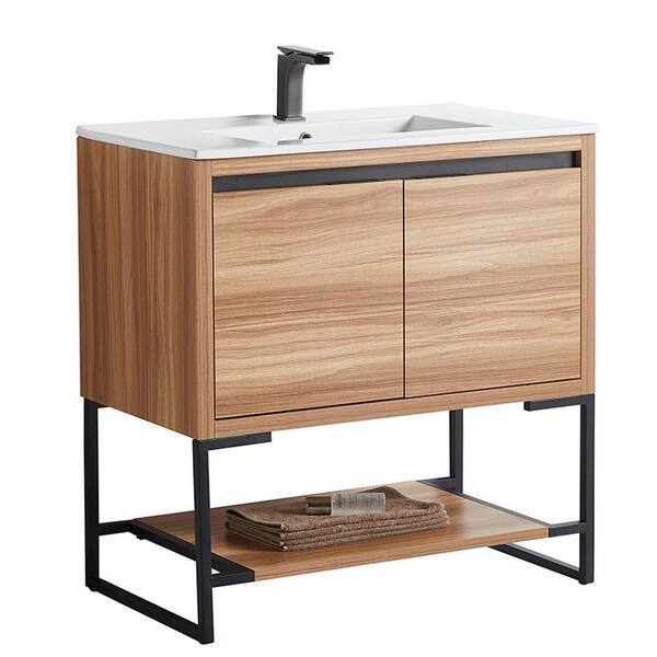 Tellara 36 in. W x 18 in. D x 35 in. H Bath Vanity in Maple with White Ceramic Vanity Top with White Basin