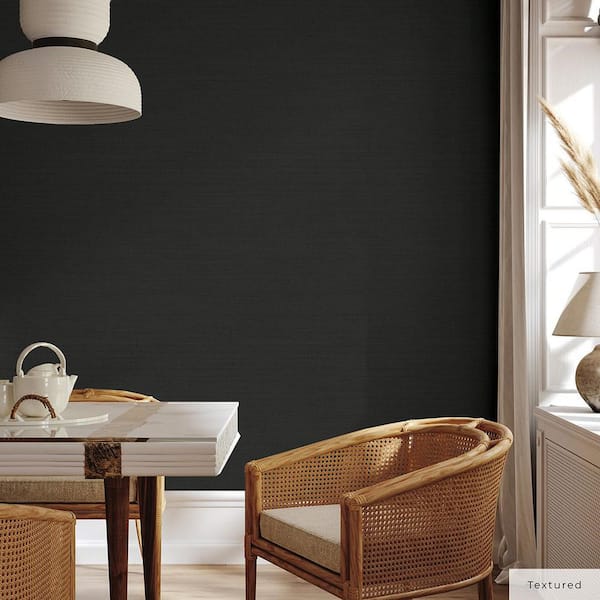 Black Raven Faux Horizontal Grasscloth Vinyl Peel and Stick Textured Wallpaper Roll (Covers 28 sq. ft.)