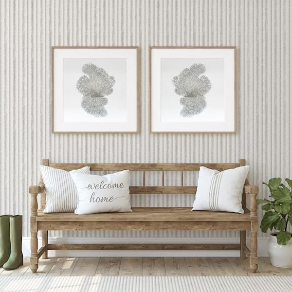 Charcoal and Cotton Nautical Stripe Vinyl Peel and Stick Wallpaper Roll (Covers 28 sq. ft.)