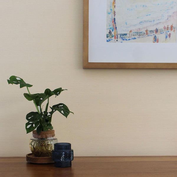 Cream Beige Sisal Authentic Grasscloth Handwoven Unpasted Textured Wallpaper Sample, 4.5 in. x 4.5 in.
