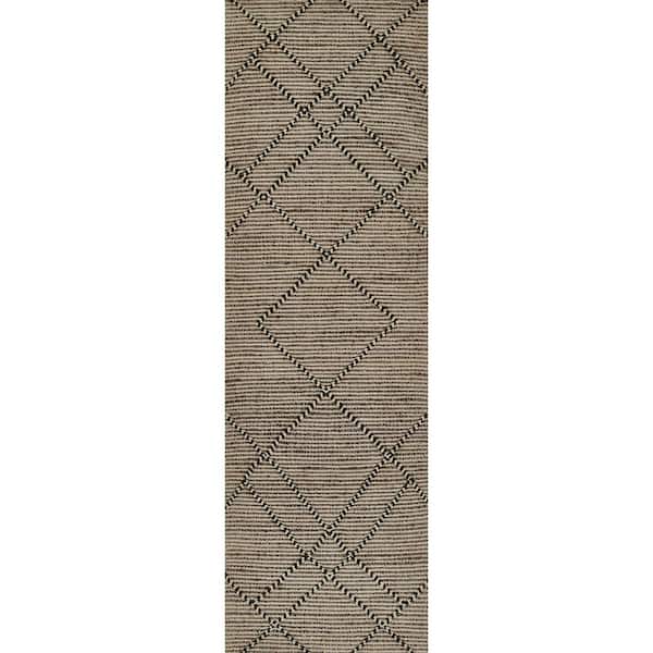 Diamond Weave Natural 2 X 8 Handwoven Jute and Wool Runner Rug