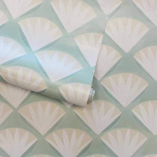 Fresh Mint Deco Shell Vinyl Peel and Stick Wallpaper Roll (Covers 28 sq. ft.)