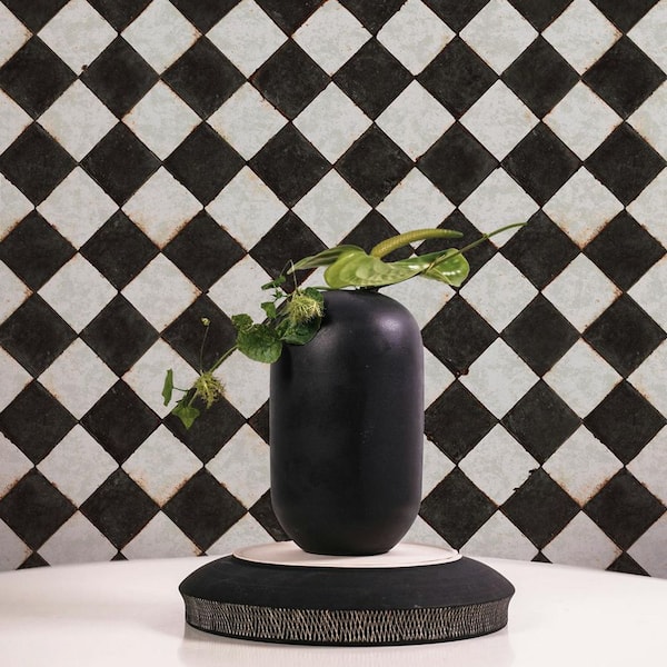 Jeremiah Brent Black & White Vintage Check Peel and Stick Vinyl Textured Wallpaper Roll (covers 28 sq.ft.)