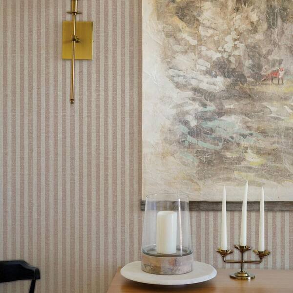 Jeremiah Brent Ecru & Brown Charles Street Stripe Peel and Stick Vinyl Textured Wallpaper Roll (covers 56.37 sq. ft. )