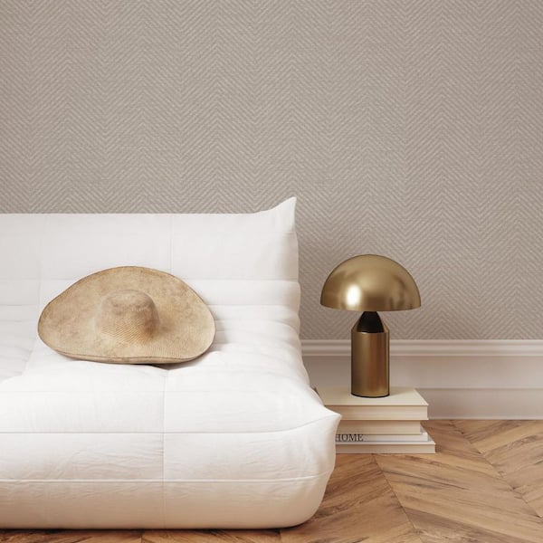 Jeremiah Brent Ecru Faux Grasscloth Parquet Peel and Stick Vinyl Textured Wallpaper Roll (Covers 56.37 sq. ft. )