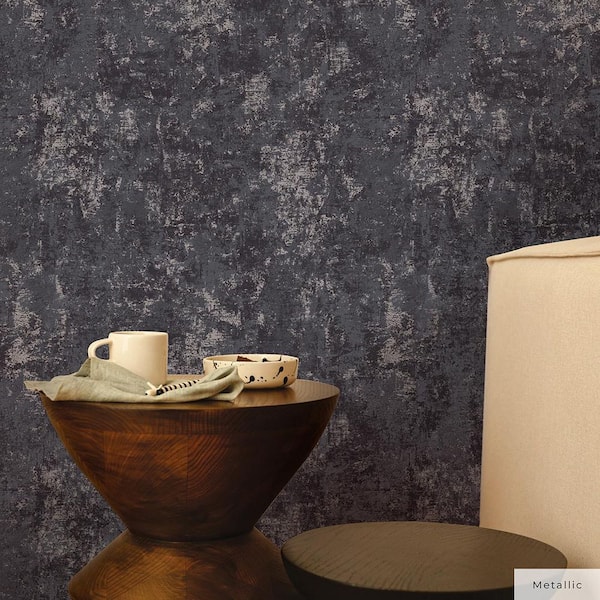 Metallic Gunmetal Distressed Gold Leaf Vinyl Peel and Stick Wallpaper Roll (Covers 56 sq. ft.)