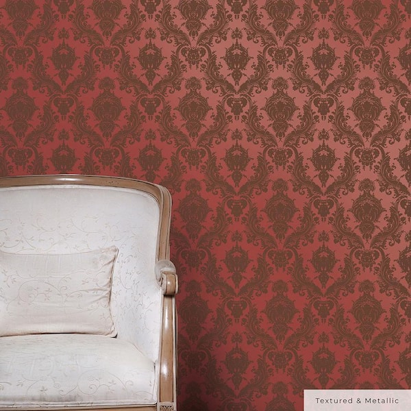 • Enhance your home in grandeur with metallic red damask wallpaper