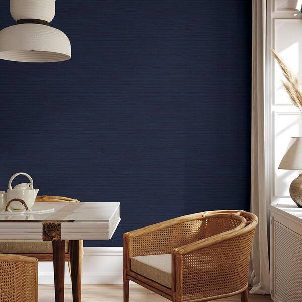 Navy Faux Horizontal Grasscloth Vinyl Peel and Stick Textured Wallpaper Roll (Covers 56 sq. ft.)