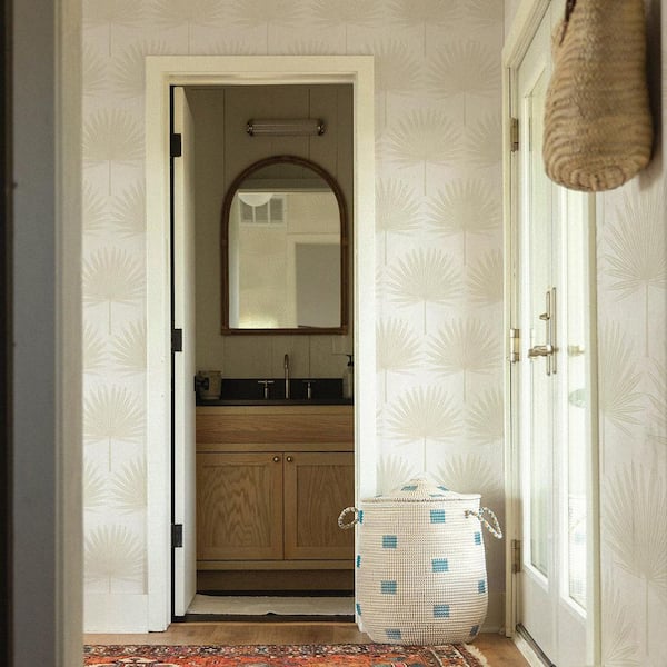 Sand stone and Off-White Stamped Palm Vinyl Peel and Stick Wallpaper Roll (Covers 56 sq. ft. )