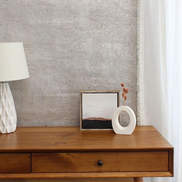 Warm Silver Metallic Authentic Cork Unpasted Textured Wallpaper Sample, 4.5 in. x 4.5 in.
