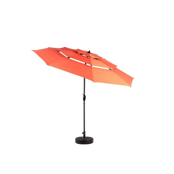 10 ft. Aluminum 3 Tier Auto-tilt Patio Umbrella Market Table Pool Deck Umbrella (Base Not Included) in Orange