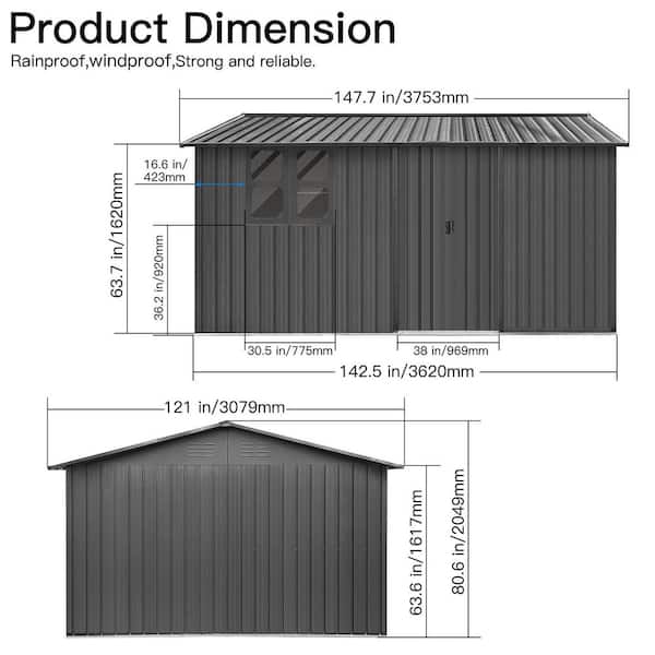 10 ft. W x 12 ft. D Metal Gray Storage Garden Shed with Sliding Door and Window (120 sq. ft. )