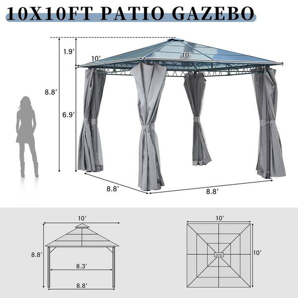 10 ft. x 10 ft. Gray Hardtop Outdoor Gazebo with Polycarbonate Roof, Mosquito Netting and Privacy Screens